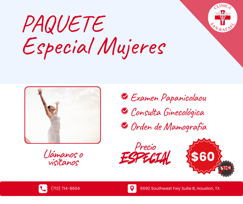 Prevención sencilla y tu alcance: En Clínica San Rafael hacemos tu examen preventivo de papanicolaou de forma rápida y accesible. En nuestras clínicas hispanas te atendemos con respeto y confidencialidad, Sin cita previa, y atención en español, cerca de tu hogar.